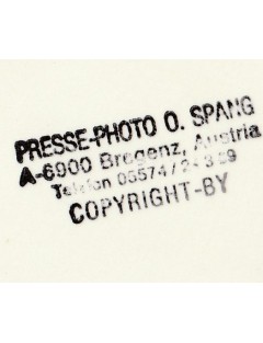 Auf der Rückseite befindet sich ein Copyright-Stempel von Presse-Photo O. Spang (Bregenz, Österreich).