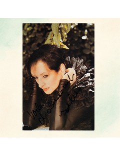 Magnifique carte photo promotionnelle originale (10 × 15 cm env.) signée au feutre noir par Barbara avec la dédicace manuscrite :
