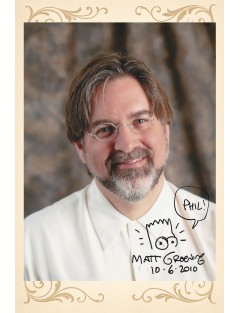 Beautiful color photograph (8x10.5”) signed in black ink by Matt Groening, creator of The Simpsons.
