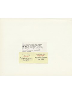Questa stampa fotografica originale, scattata durante la promozione del film The Hit, cattura l'intensità di due giganti del cinema: John Hurt e Terence Stamp. Firmata da entrambi gli attori durante le loro apparizioni al Festival di Cannes (1997 per John Hurt e 1999 per Terence Stamp), questa fotografia rappresenta un'epoca d'oro del cinema britannico.