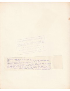 L'immagine è una foto ufficiale scattata durante l'evento Royal Film Performance a Londra il 24 febbraio 1962, dove partecipò alla proiezione in presenza della Regina Elisabetta II. Questa rara fotografia è stata firmata con penna dall'attrice, con la dedica "Peter". Il carattere intimo e autentico di questa dedica su una stampa argentica originale la rende un oggetto particolarmente ricercato dai collezionisti.
