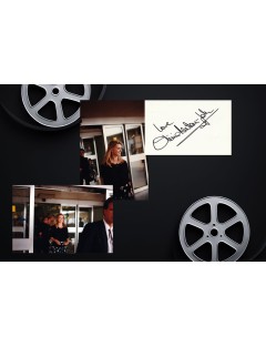 This ensemble, combining an authentic signature with two unpublished vintage photographs, stands as a rare and precious testimony to the career and luminous presence of Olivia Newton-John, an icon of international cinema and music.