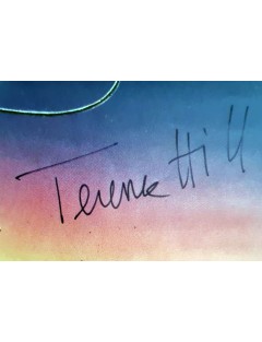 A rare and exceptional ensemble, combining an authentic Terence Hill signature with the cult poster of the film he both directed and starred in.