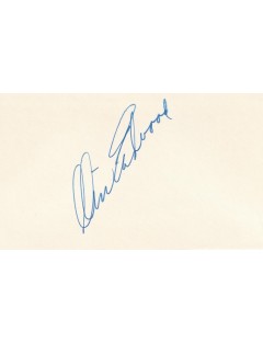 Superbe autographe à l’encre bleue signé par la légende du cinéma américain Clint Eastwood sur un bristol (env. 13 x 8 cm).